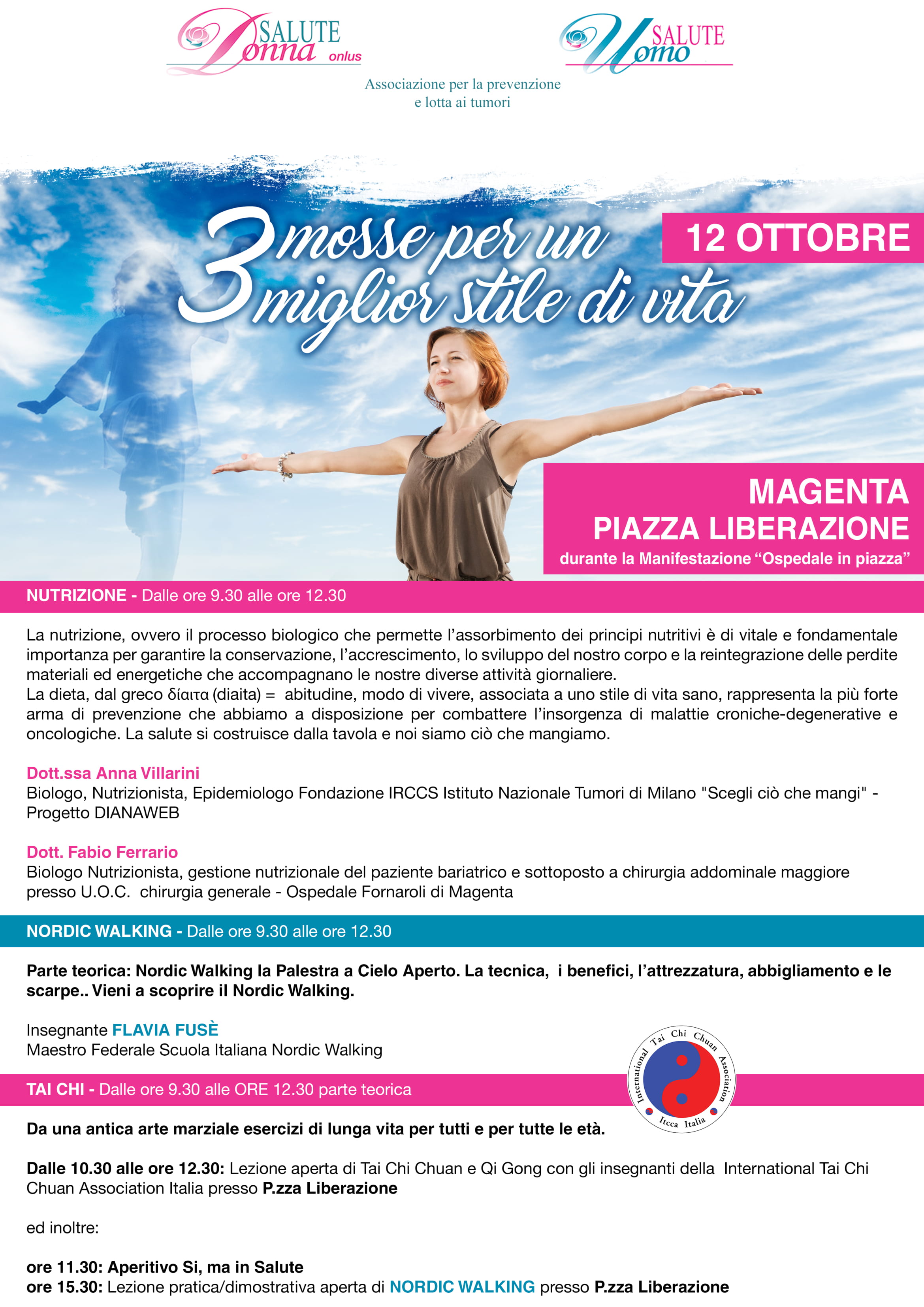 Incontro con la popolazione organizzato da SALUTE DONNA & SALUTE UOMO ONLUS: "3 Mosse per un migliore stile di vita. 12 ottobre 2019, Magenta".